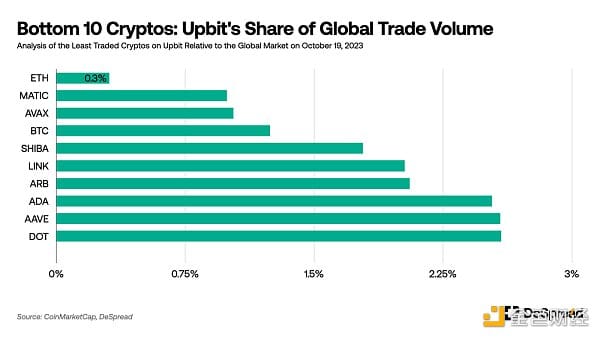 排名垫底的 10 个加密货币:Upbit 在全球交易量中的份额